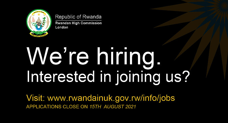 We are pleased to announce there are two exciting job opportunities available at the Rwandan High Commission in London.